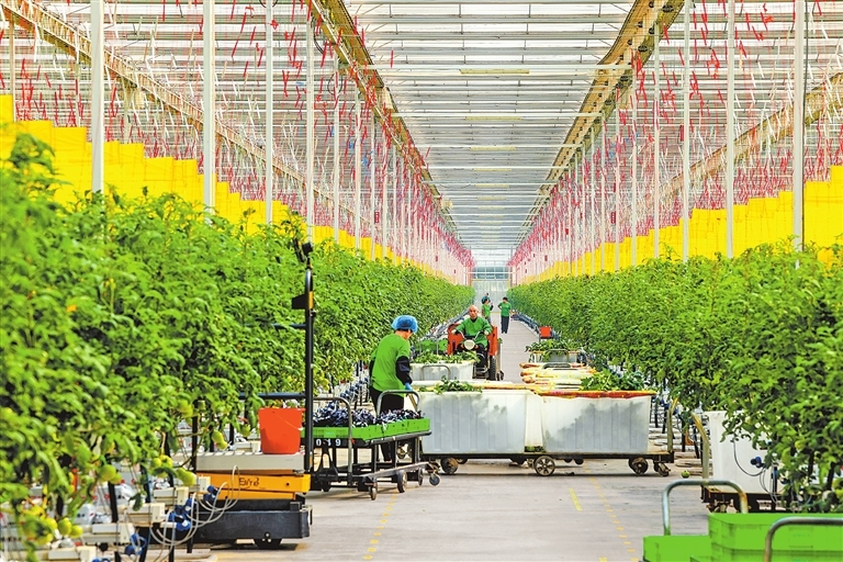 11月7日,位于洛阳市伊滨区的洛阳国际现代农业科技示范园内,番茄苗长势良好,工人们正忙着给番茄苗整枝、记录生长情况等。近年来,园区致力于发展现代智慧高效农业,采用无土栽培创新技术,提高番茄的产量和质量。倪睿 摄