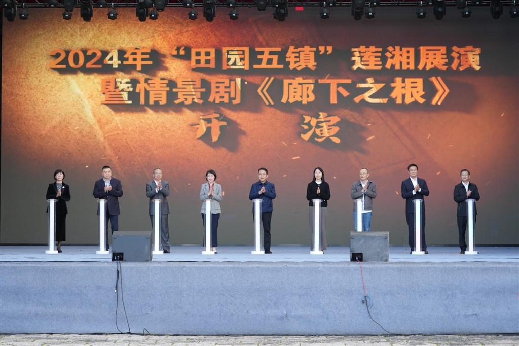 11 月 7 日,“田园五镇” 莲湘舞展演暨情景剧《廊下之根》首演活动于廊下生态园启幕。