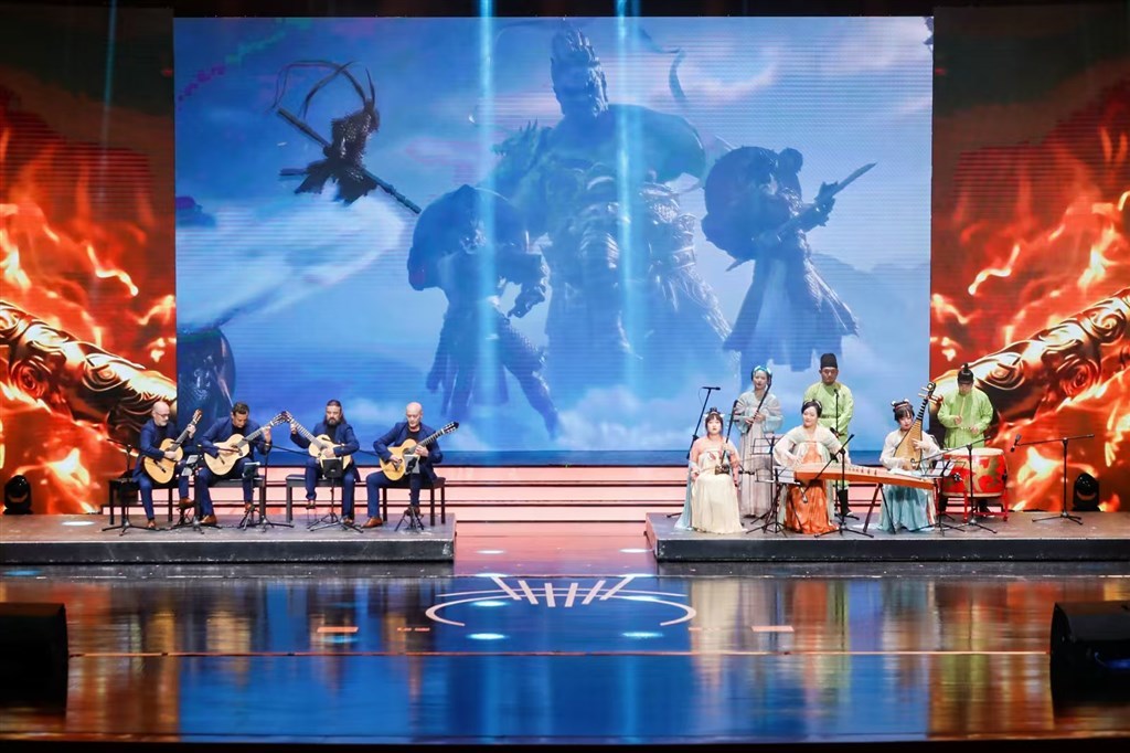 熟悉的旋律响起,1986版电视剧《西游记》的片头曲《云宫迅音》瞬间勾起了观众的童年记忆。演奏者除了上海音乐学院的民乐团,更有何塞·托马斯吉他四重奏团惊艳加盟。通过巧妙的编曲和精心的编排,中西两个乐队在舞台上碰撞出了别样的火花,节目表演一气呵成,赢得全场掌声。其实,早在排练期间,何塞·托马斯吉他四重奏团的几位演奏家就坦言,他们喜欢《西游记》中的美猴王,也很喜欢《云宫迅音》这个曲目。这场跨界合作,不仅展示了中国原创音乐的独特魅力,更在对外文化交流中传递了深厚的文化自信,同时证明了无论时代如何变迁,那些蕴含深厚文化底蕴与艺术价值的中国原创音乐,始终能够跨越国界,赢得全球听众的热爱与共鸣。