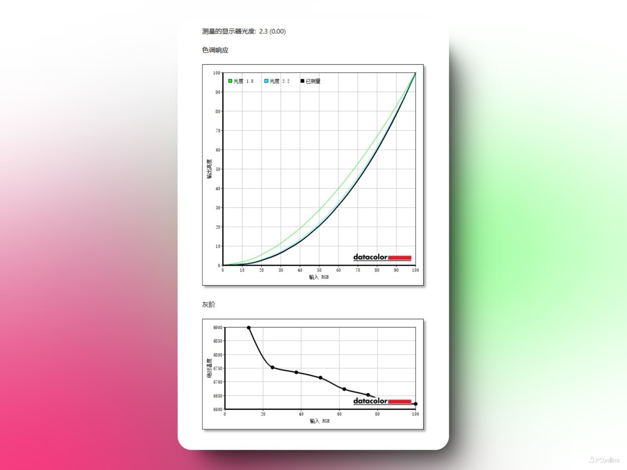 在伽马曲线测试中,HKC G27M7 Pro 的表现与标准的 Gamma 2.2 曲线 高度吻合。伽马曲线描述了显示器亮度与输入信号之间的关系,理想的伽马值能够确保画面的亮度与对比度均衡,保证图像的真实再现。