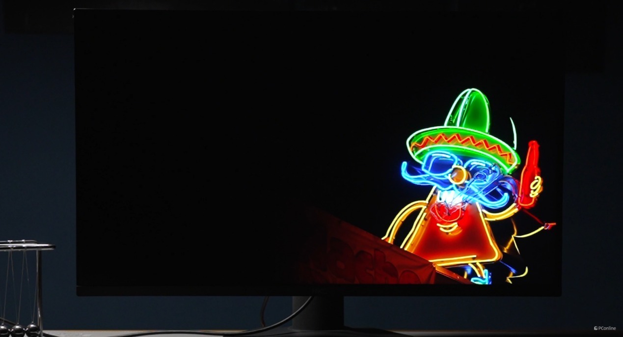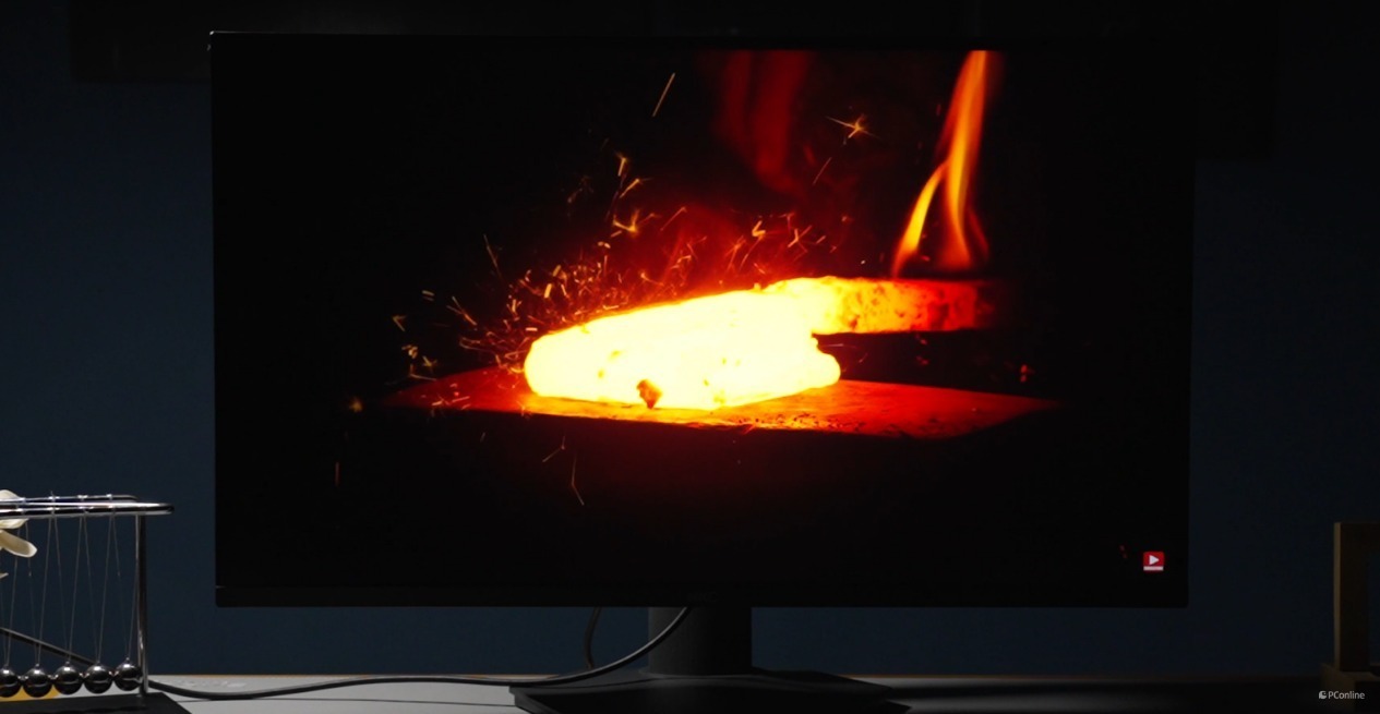 在播放 HDR 影片时,我们能够清晰感受到 MiniLED 背光带来的优势。在正常水平的观看角度下,暗部表现几乎与 OLED 显示器相媲美,黑色区域深邃且无明显的漏光现象。相比之下,亮部的表现则优于 OLED,尤其是在高光场景(如闪光、火焰或灯光)中,MiniLED 的高激发亮度让这些光源显得愈发明亮耀眼,画面更具真实感。