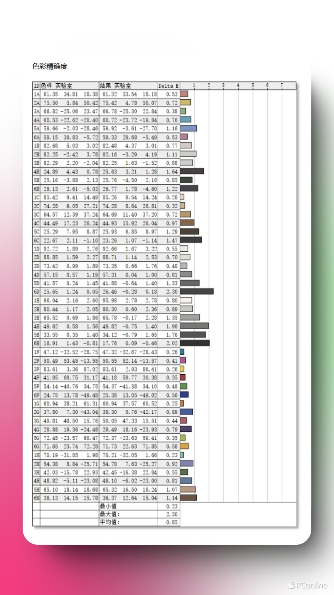 最后,在色彩准确度方面,HKC G27M7 Pro 取得了令人惊艳的成绩,实测的平均 Delta E 为 0.85。Delta E 是用于衡量显示器色彩准确度的数值,数值越低,色彩越接近真实表现。通常来说,Delta E 小于 1 已经接近专业级别的显示器表现,而 HKC G27M7 Pro 在默认状态下就能达到这一水准,甚至与一些专业级显示器不相上下。如此优秀的色彩准确度不仅提升了游戏中的视觉体验,还使得这款显示器能够胜任专业设计、视频剪辑等工作。