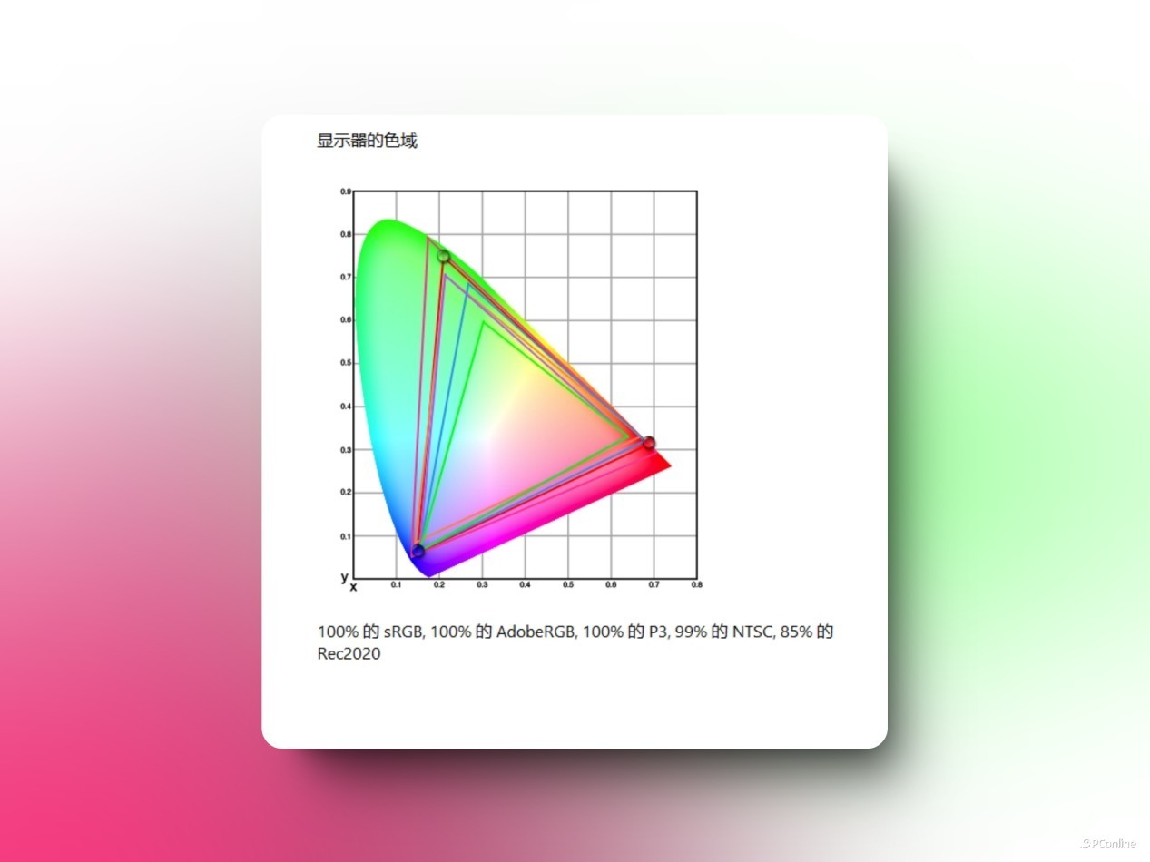 DCI-P3 色域 广泛应用于电影与视频制作,高达 100% 的覆盖率意味着这款显示器不仅在游戏中表现出色,还能胜任对色彩准确度要求较高的工作,如视频剪辑和图像后期处理。对于 Mac 用户,100% 的 P3 色域覆盖也能良好兼容苹果设备的色彩生态,带来更一致的视觉体验。
