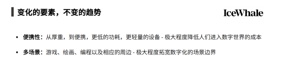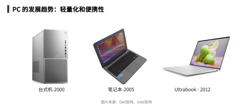 值得注意的是,PC的发展揭示了一个明确的趋势:轻量化和便携性。