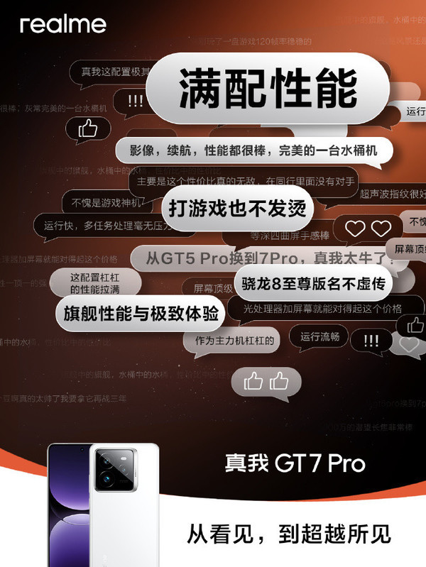 【CNMO科技消息】11月8日,真我手机官方正式公布了真我GT7 Pro预售期的用户评价,收获了一大波用户真实好评。不少用户评价称,“运行流畅不卡顿”、“影像、续航、性能都很棒,完美的一台水桶机”、“玩游戏帧率很稳”、“打游戏也不发烫”、“骁龙8至尊版名不虚传”、“不愧是游戏神机”等。