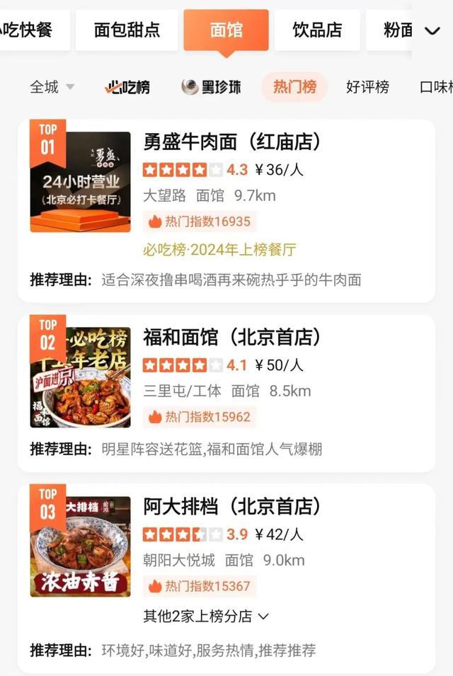 大众点评显示,北京面馆热门榜前三,除了开了11年的“老网红”勇盛牛肉面,其余两家都是今年新开到北京的本帮面馆。