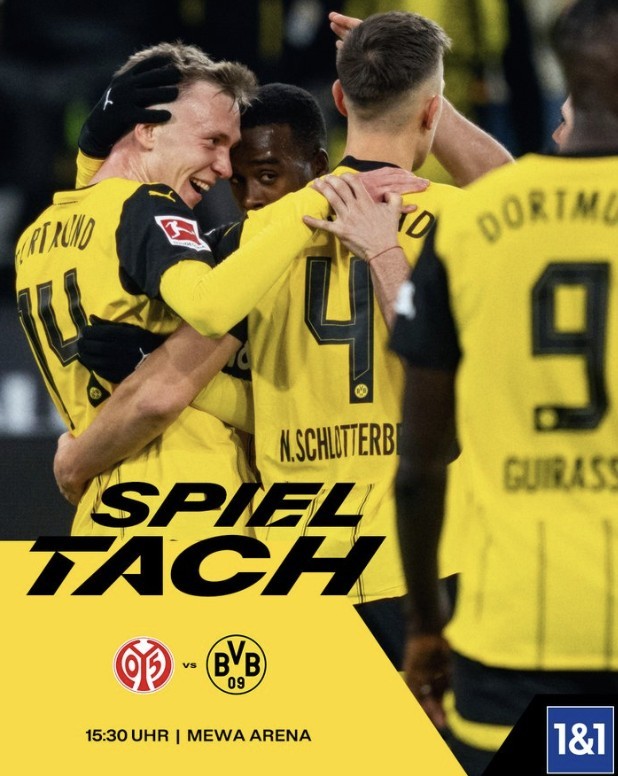 北京时间11月9日晚上22:30分,德甲第11轮,多特蒙德将前往客场挑战美因茨。赛前,多特蒙德官方发布了本场比赛的赛前海报。
