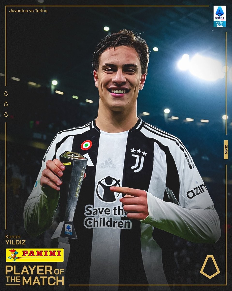 在意甲第12轮的都灵德比中,凯南-伊尔迪兹第84分钟的进球帮助尤文图斯在主场2-0击败都灵,赛后这位土耳其新星被意甲官方评为了本场比赛的最佳球员。