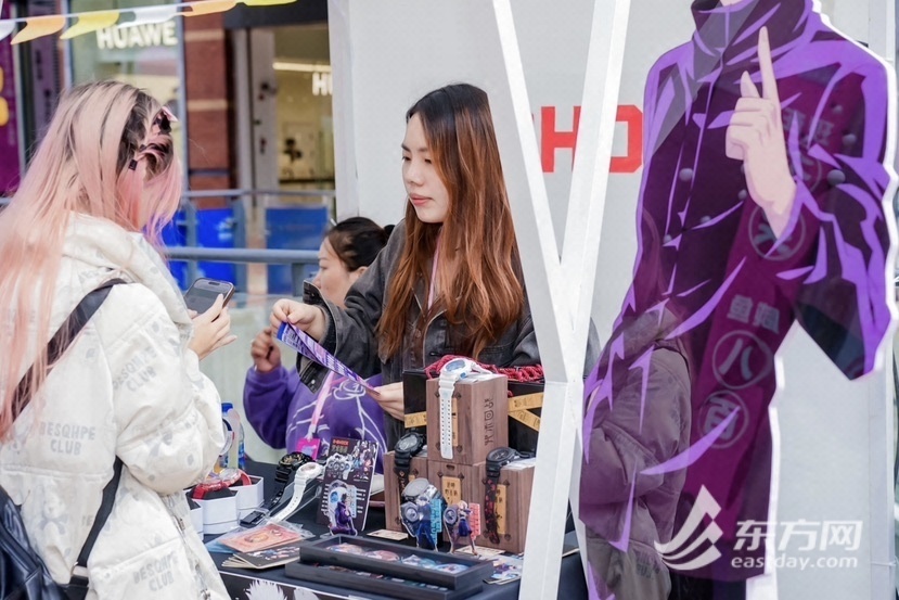 尤其是FUFUSOUL和Loopy的萌趣周边,让二次元爱好者爱不释手,市集中间区域的FUFUSOUL互动展示区,更是成了热门的拍照打卡点。限量版手办、同人画作等珍贵商品所在的摊前,不少身着二次元服饰的coser在此竞相选购,仿佛在逛小型漫展,二次元氛围瞬间拉满。
