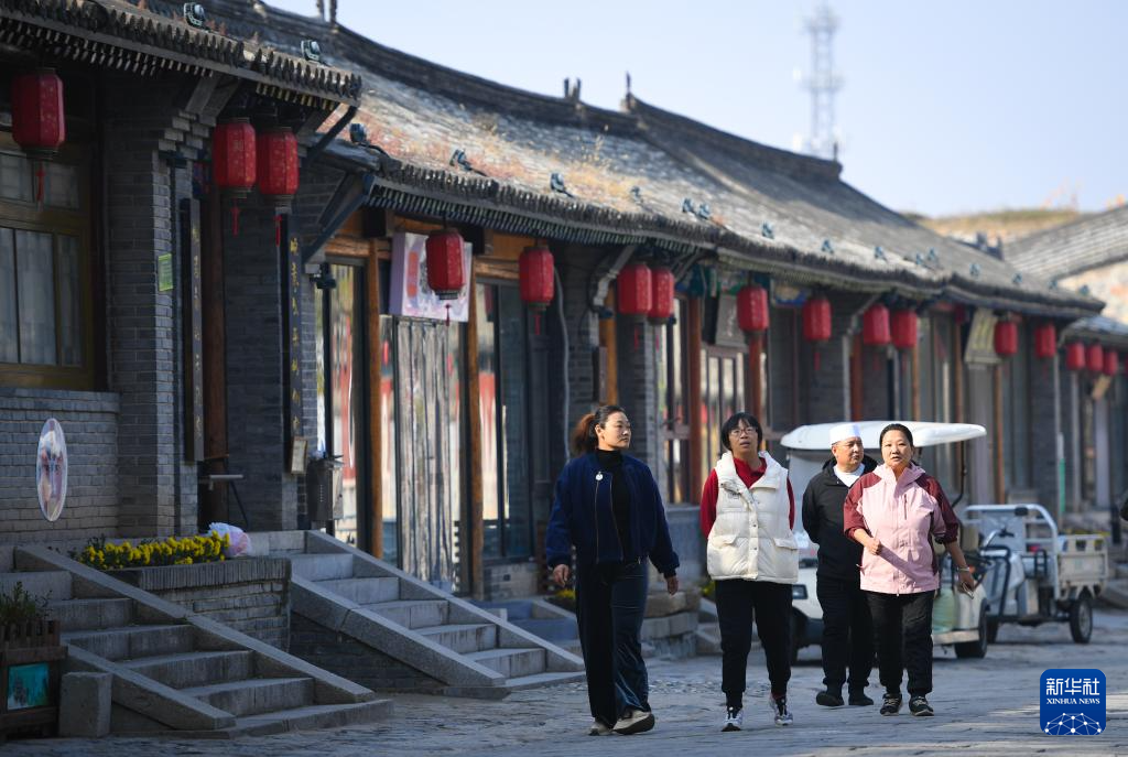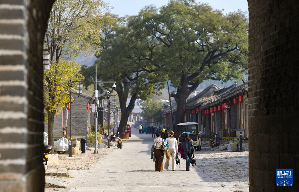 人们走在北京市延庆区八达岭镇的岔道古城(11月1日摄)。