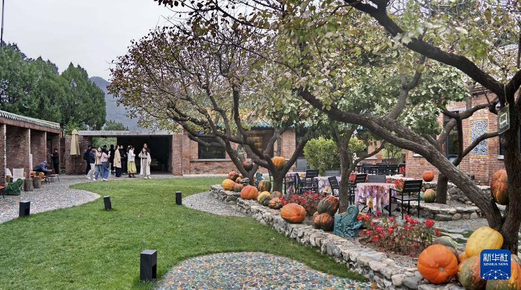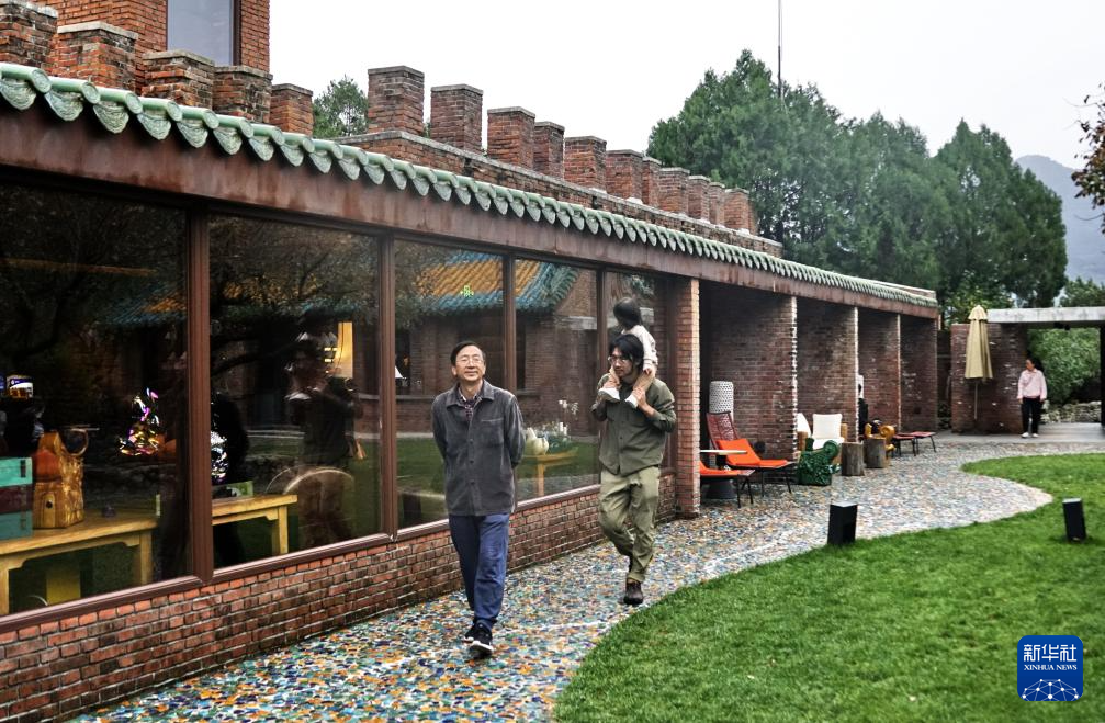 游客在北京市怀柔区渤海镇北沟村的特色民宿大院休闲(10月17日摄)。近年来,北沟村先后引进投资打造乡村民宿和高端精品酒店,并在村内建设风格独特的美术馆、乡村阅读室等文化设施,以及京郊首家民宿中心,集约化经营模式推动了村级民宿产业走上兴旺发展的道路。