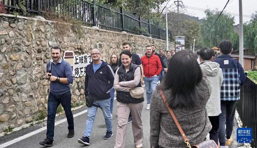 外国游客在北京市怀柔区慕田峪长城脚下的渤海镇北沟村内参观游览(10月29日摄)。