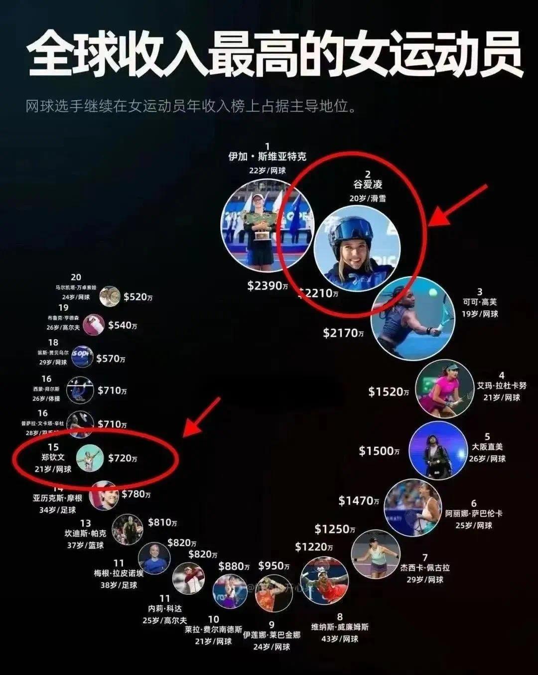 2023年女运动员收入榜上,郑钦文以720万美元排在第15位,按照今年的成绩和热度,挣一个小目标问题不大。