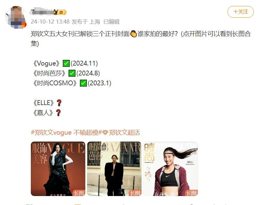 22岁,郑钦文已经拿下时尚五大刊中的三个。网友甚至在“剩下”两个大刊的评论区留言,质问他们为什么还不找郑钦文拍封面。