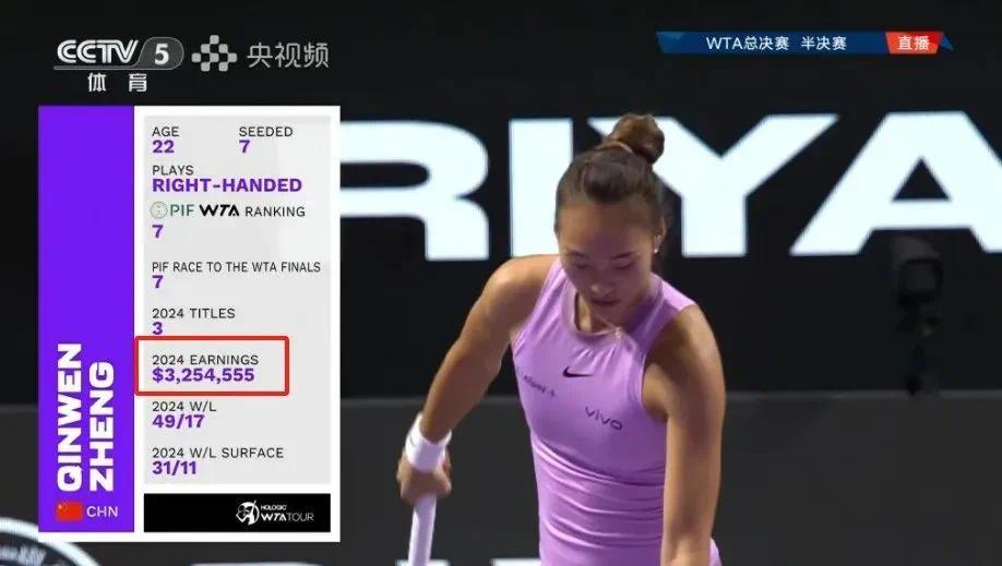 好成绩最直接的体现就是奖金。澳网亚军的奖金是172.5万澳元,约合815万元人民币,尽管奥运会是没有职业奖金,年终总决赛前,郑钦文还是挣了320多万美元。加上这次年终赛的230.5万美元,郑钦文单凭打球今年就赚了555万美元,准确的数字是:5,559,555美元(约3990万元)。
