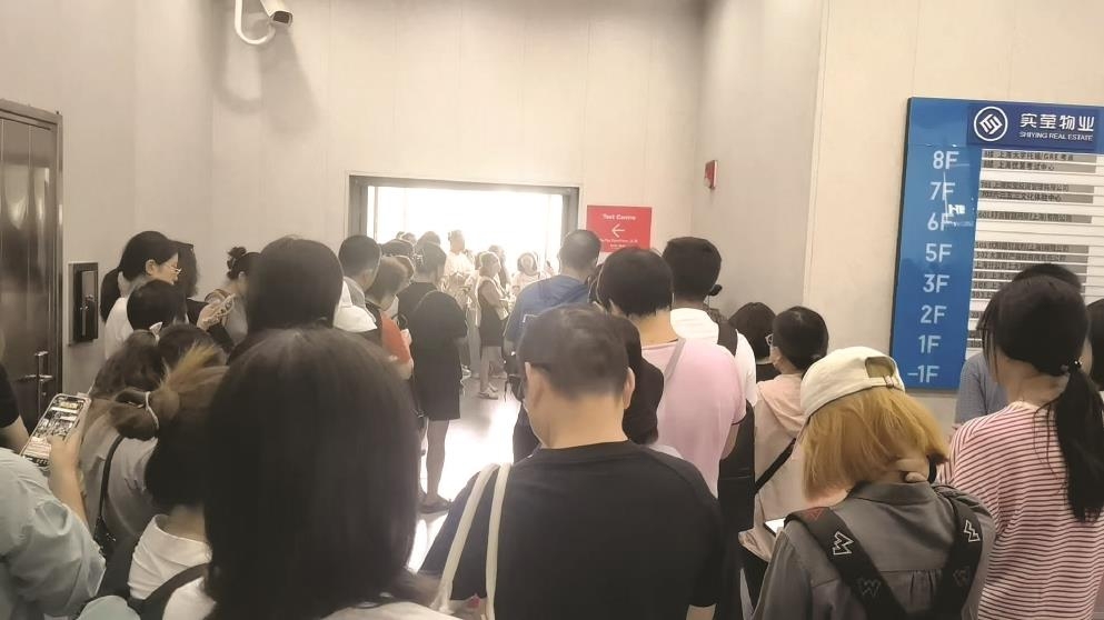 近两年随着考试频次的提高以及自媒体的推波助澜,小托福受到很多重视英语的家长追捧。图为上海某小托福考点,众多家长在考场外等候。(受访者供图)