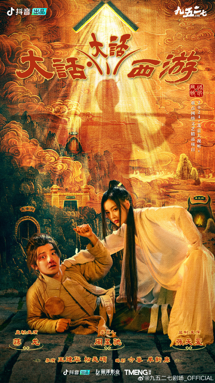 由周星驰出品,蒋龙、张天爱监制和主演,王建华、松天硕执导,六兽、单新康编剧,付航、蒋诗萌、宋木子等出演的短剧《大话大话西游》,于11月8日独家上线抖音。