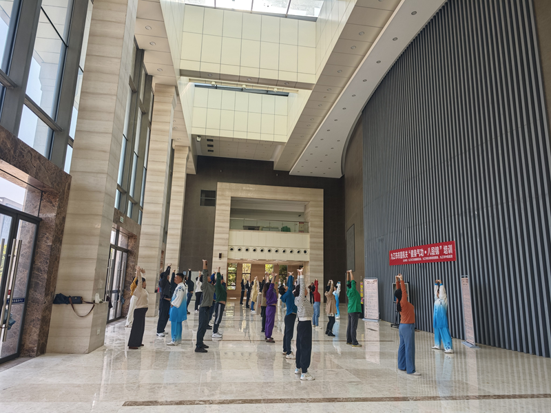 为推动全民健康生活方式行动走深走实,弘扬中华传统健身文化,11月6日,九江市卫生健康委员会、市机关事务管理局联合市中医医院组织开展“健身气功·八段锦” 工间操领操员教学培训活动,市直各机关单位职工共计60余人参加。