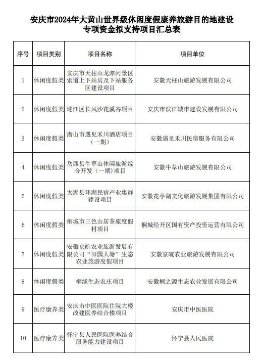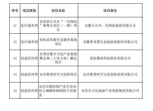 安庆市共有15个项目