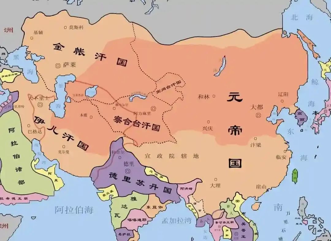 1271年,成吉思汗之孙忽必烈建立元朝,并于1279年彻底消灭南宋,完成中国统一。而此时遍布在中亚和西亚的金帐、伊尔等汗国渐渐走向独立。