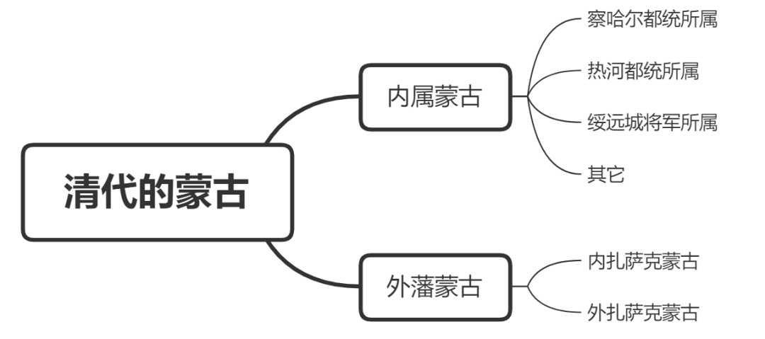 二者统称外藩蒙古,再加上直属清廷的内属蒙古,就构成了清廷对蒙古地区统治架构的全貌。