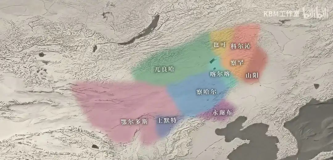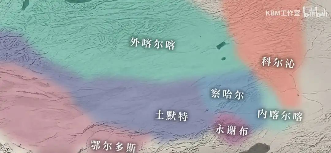 ▲喀尔喀分裂,主体外喀尔喀留在漠北(图片@KBM工作室)