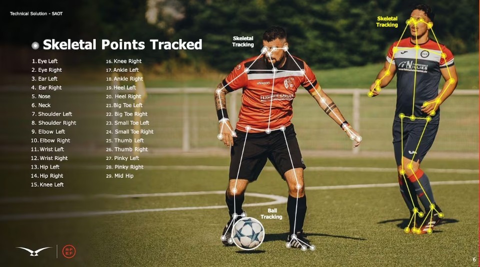 VAR只选择精准帧,接着会让机器画线并判断是否越位,尽管对于如何确定每只脚的归属存在疑问,这一工具能够识别每名球员身体的29个点,包括每只鞋的鞋尖。