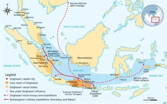 ▲印尼群岛西部岛屿,公元13世纪时期,各个封国林立