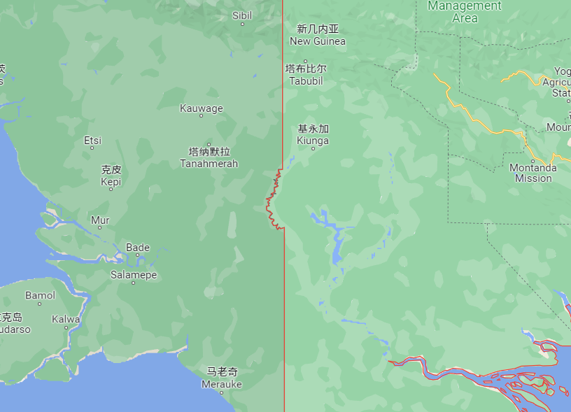 从地图上看,印尼和巴新的边界几乎是笔直的,一条直线几乎把岛屿分成东西对称的两部分,将两个国家“一刀切”。