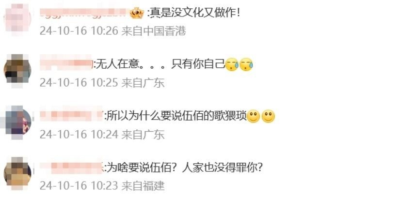 叶珂本人的账号也沦陷,最新微博的评论区被网友们刷屏吐槽:“为啥要说伍佰?真是有点不知天高地厚了。”