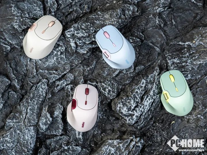 这次我们收到了四个不同颜色的雷柏MT560鼠标,分别是该款鼠标除了“素黑”之外的四个配色,分别是胭蓝、黛紫、暖茶、芽绿,四款配色可以说是各有特色,并且都采用了撞色设计,清新脱俗的胭蓝、富有表现力的黛紫、舒适柔和的暖茶、生机活力的芽绿,为用户带来了更加丰富的选择,即使是在办公当中也能够享受多姿多彩的乐趣,也可以和更多桌面主题进行搭配。