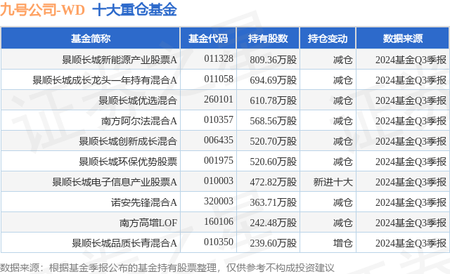 重仓九号公司-WD的前十大公募基金请见下表:
