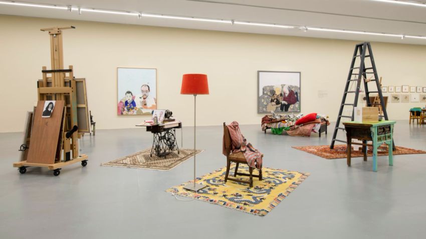 正在美术馆4号和5号厅展出的“王玉平2024”,虽然展出的百余件作品,跨越40年时间,但并非是回顾展。展厅将作品分为两个部分,第一部分呈现了王玉平近几年来的室内、物品和人物系列。在展厅摆放了画家工作室里的一些切片、角落、记忆的片段。第二部分以长卷、壁画、对比的方式,展示了王玉平的风景系列,以呼应艺术家多年实践中对东西方形式与美感的结合。