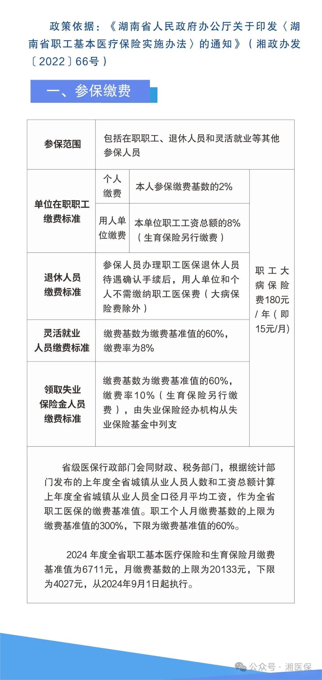 湖南省职工基本医疗保险参保缴费和待遇政策