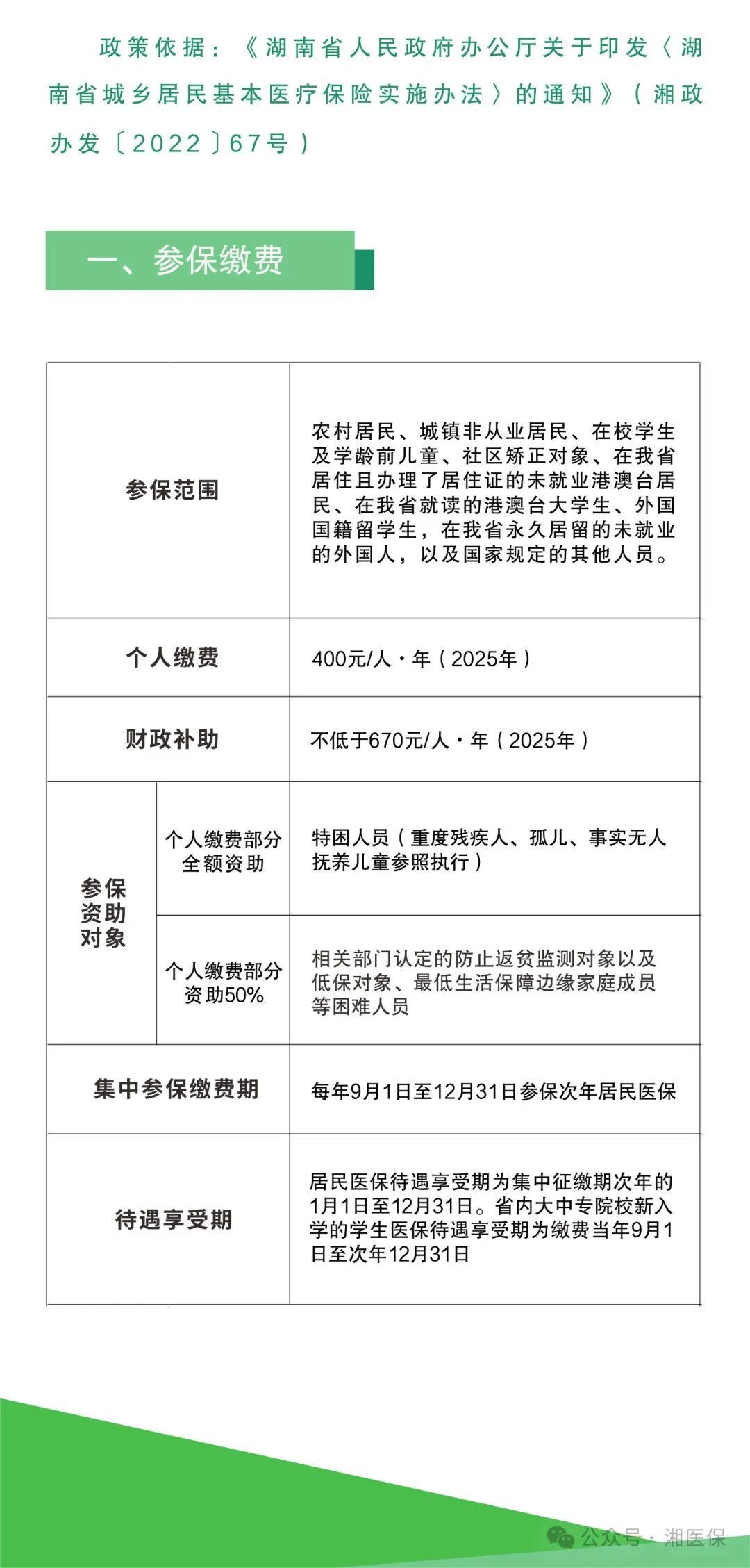湖南省城乡居民基本医疗保险参保缴费和待遇政策