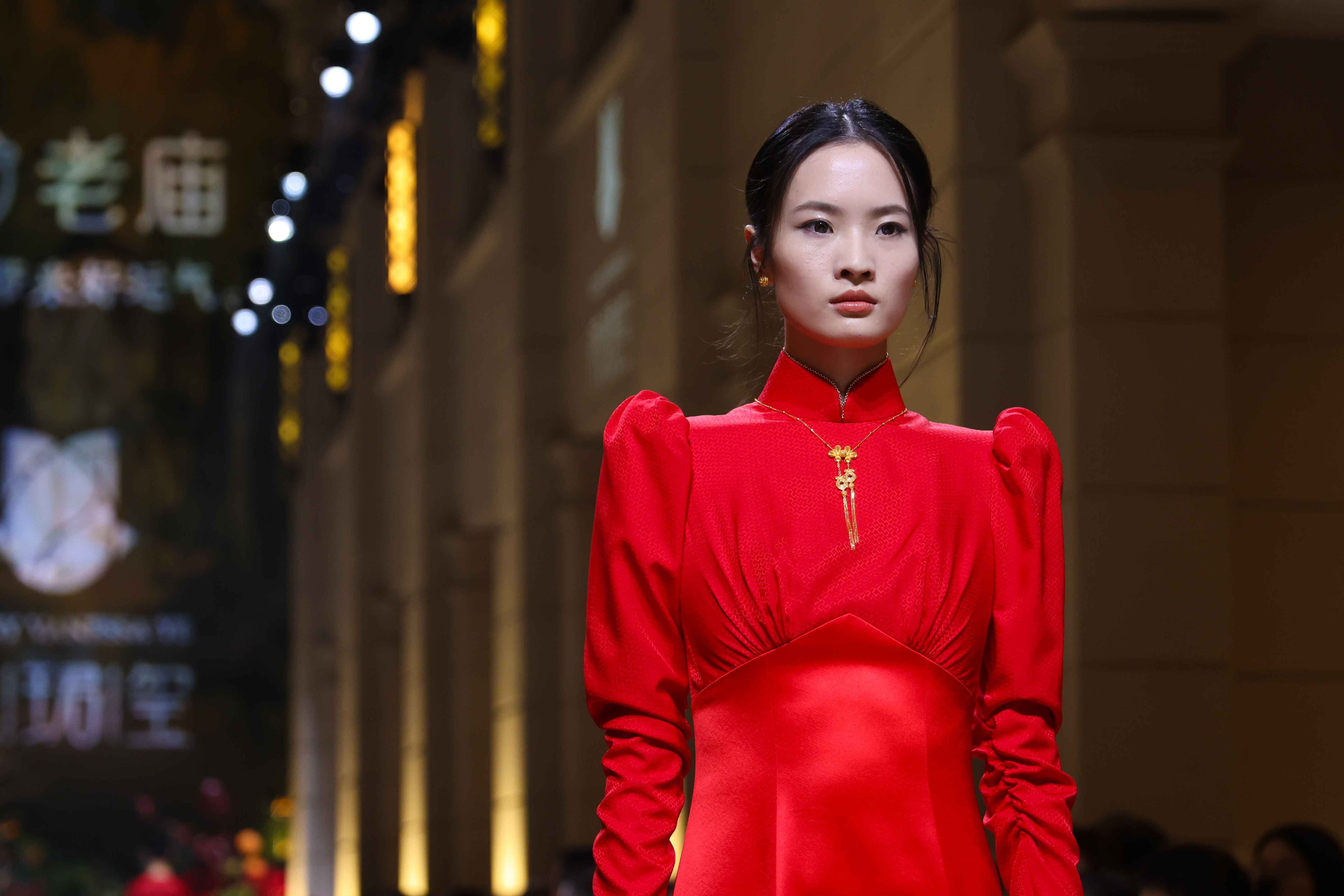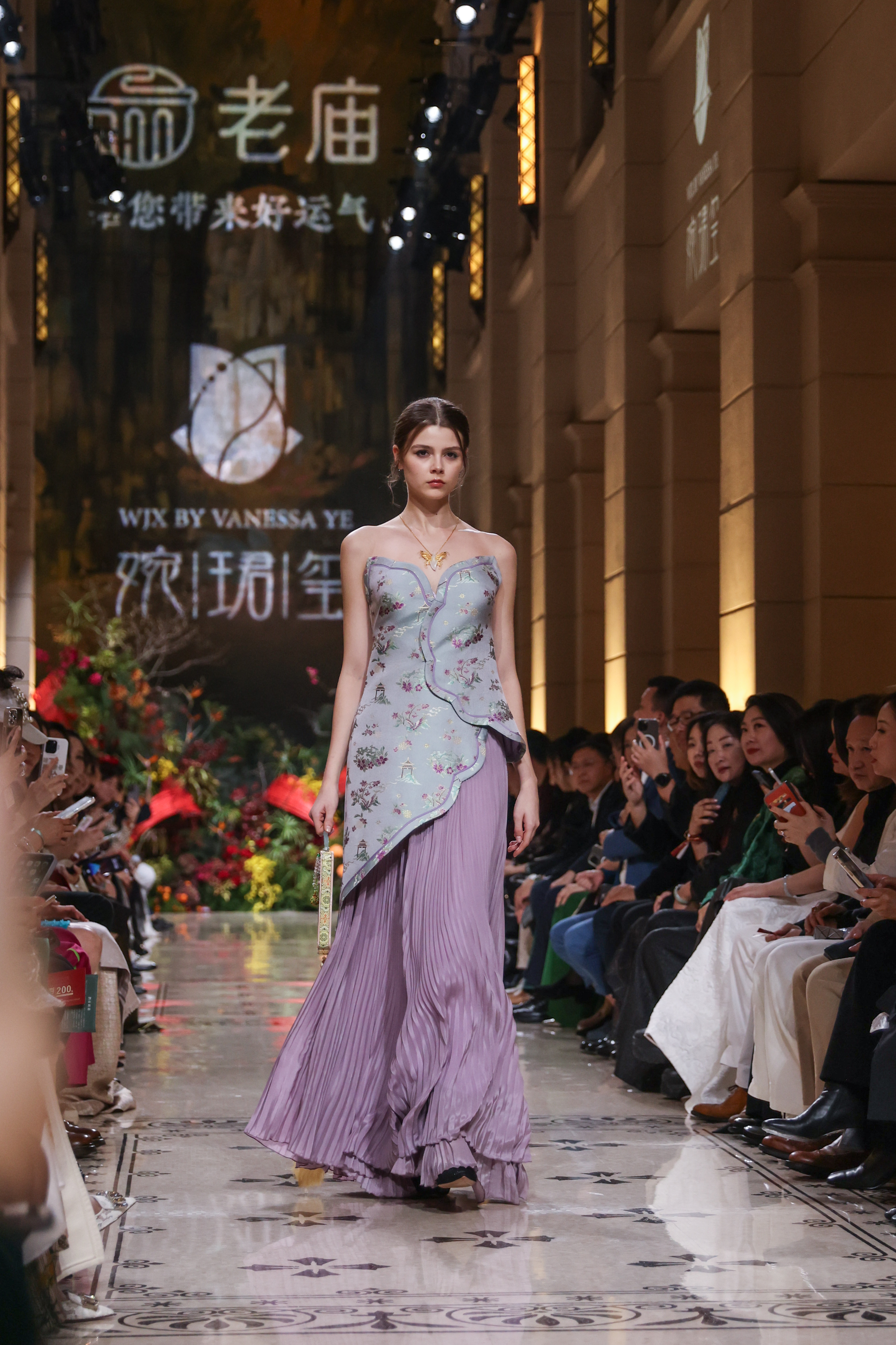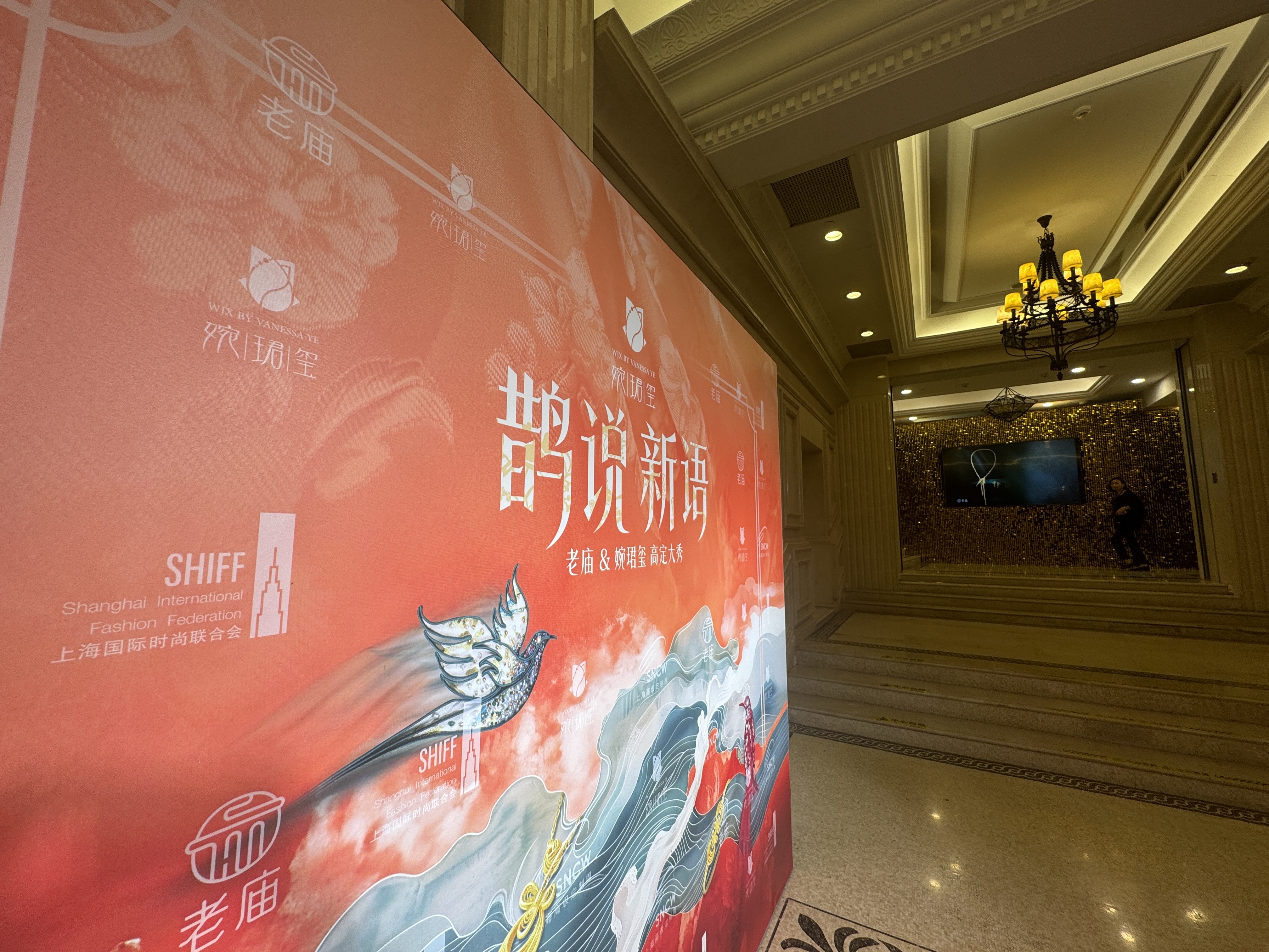 11月12日晚,上海高级定制周十周年暨第十五届上海高级定制周启幕仪式在外滩二十二号举行。老庙联手婉珺玺带来的《鹊说新语》大秀为高定周启幕。