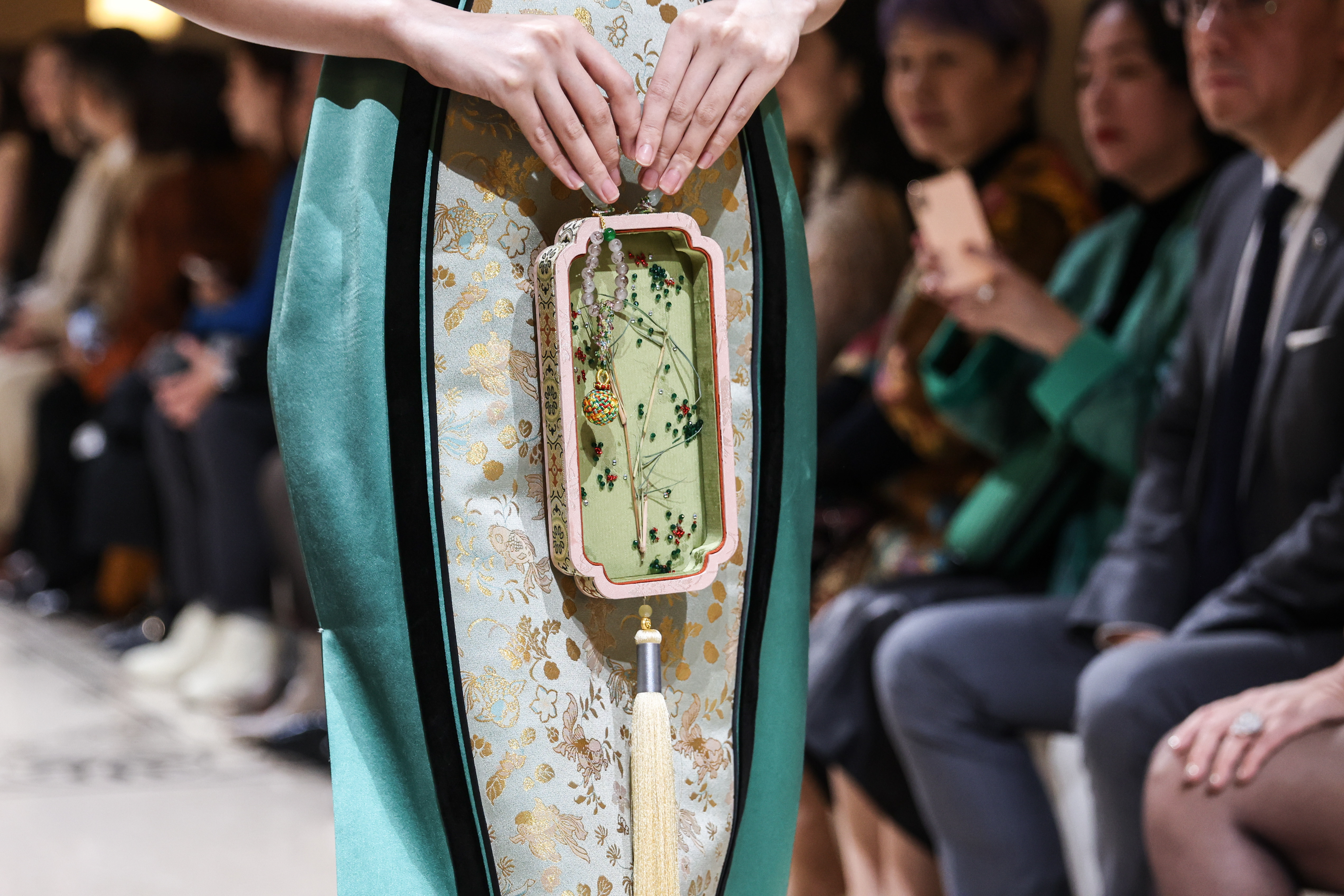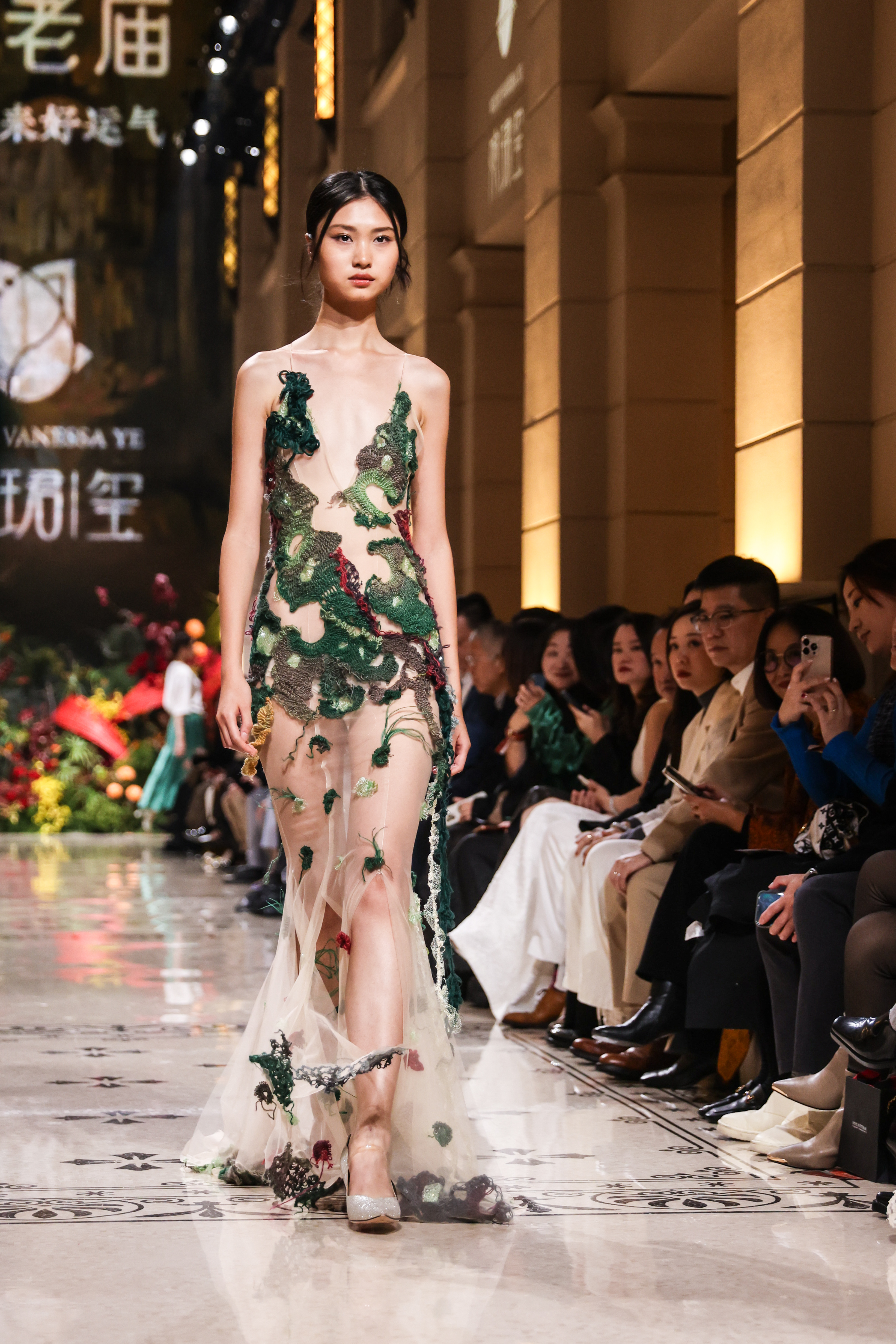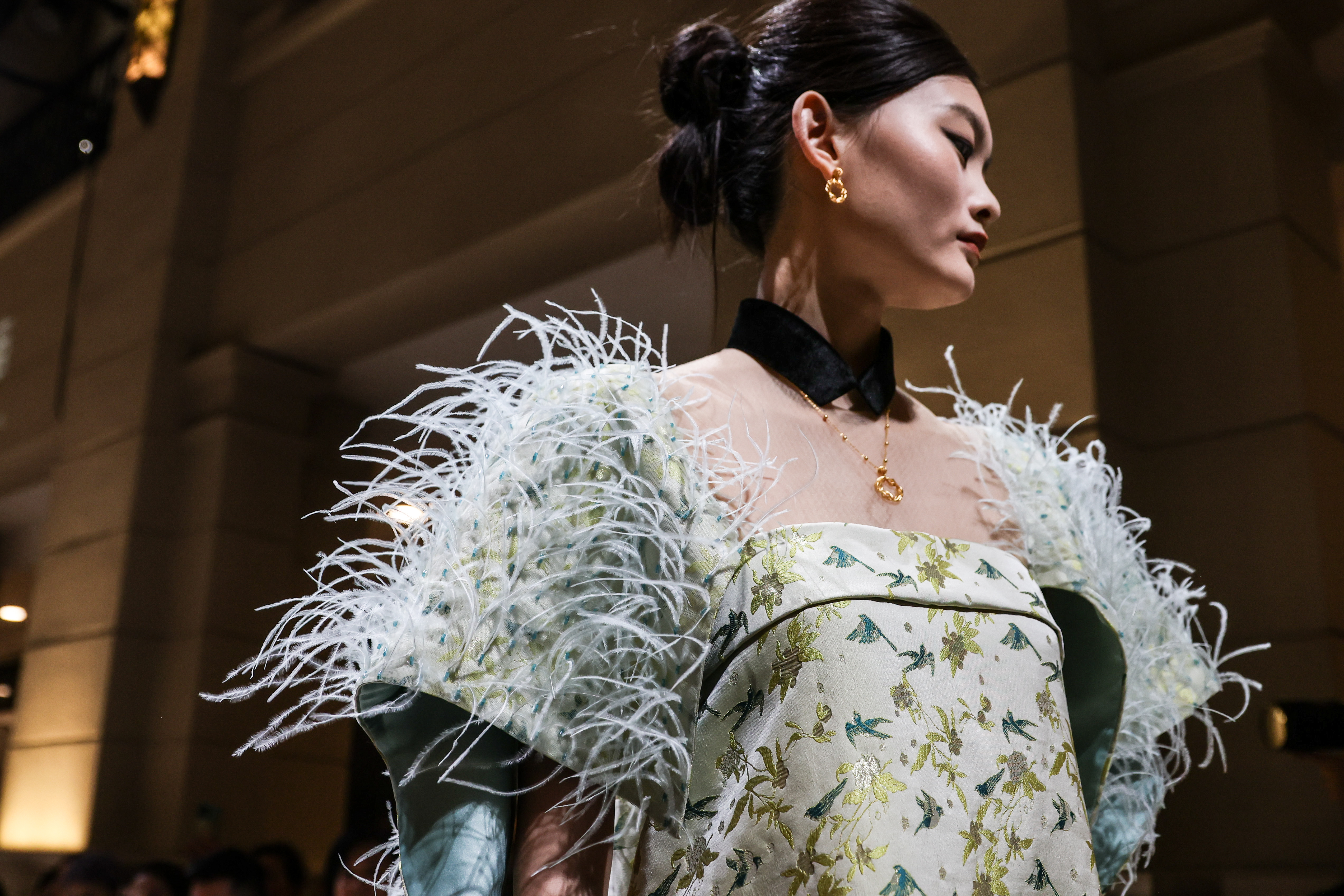 11月12日晚,上海高级定制周十周年暨第十五届上海高级定制周启幕仪式在外滩二十二号举行。老庙联手婉珺玺带来的《鹊说新语》大秀为高定周启幕。