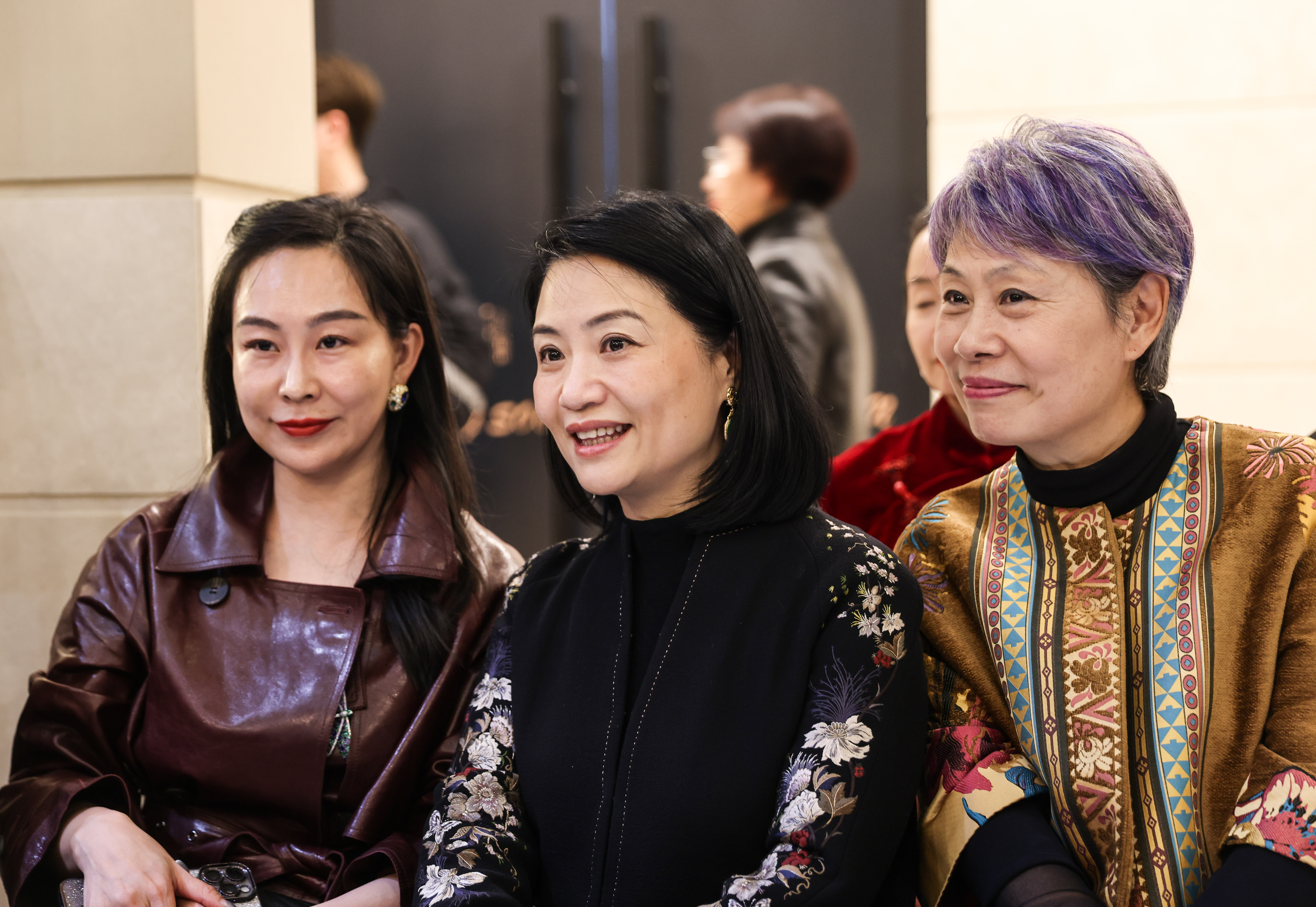 著名服装设计师郭培(中)出席开幕大秀,与在场嘉宾合影留念。
