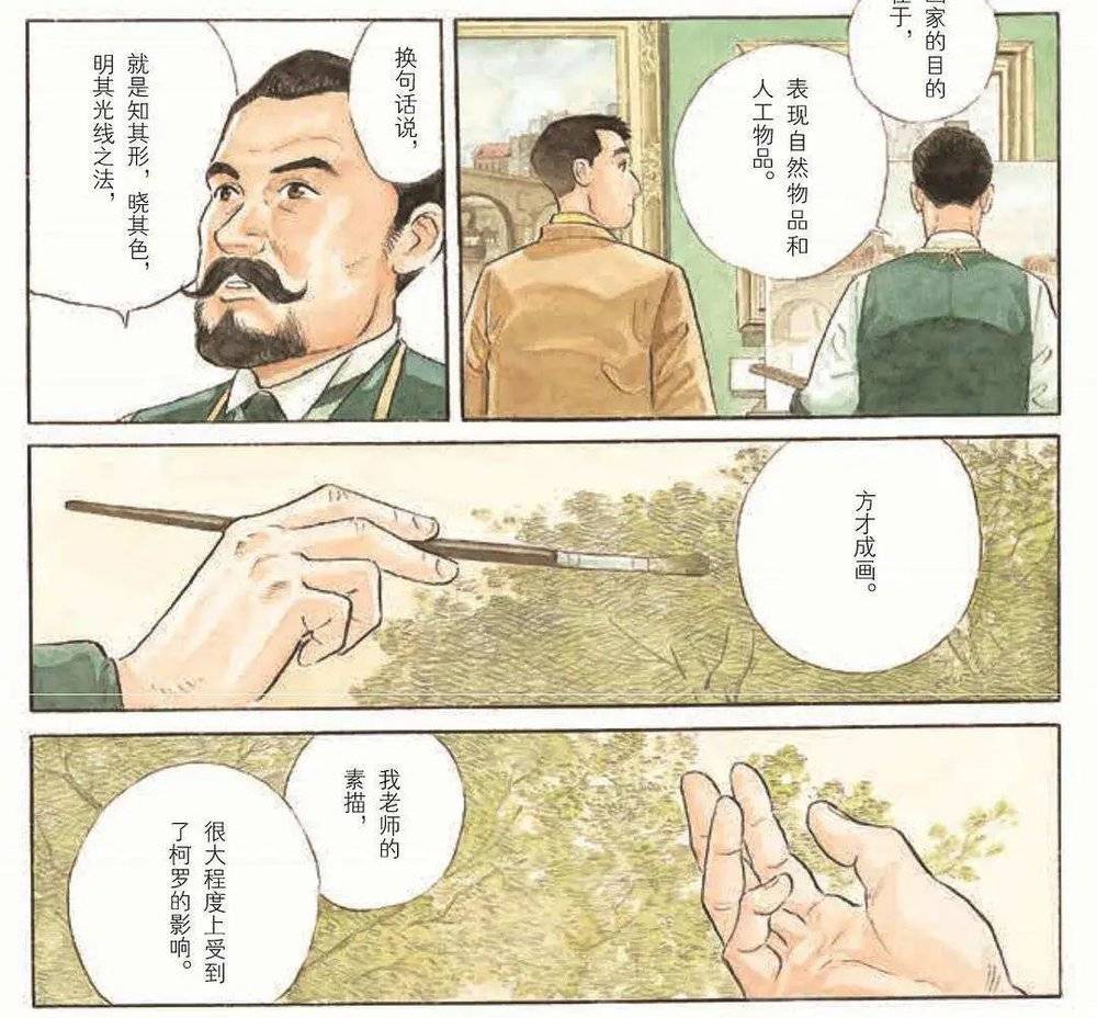 谷口治郎的不少作品,诸如描绘近代日本文豪及其时代的《少爷的时代》四部曲,完全没有日本漫画中常见的萌燃元素,而是像水墨画一样清新的图像小说。实际上,这类风格也是受了以法国为中心的欧洲漫画的影响。
