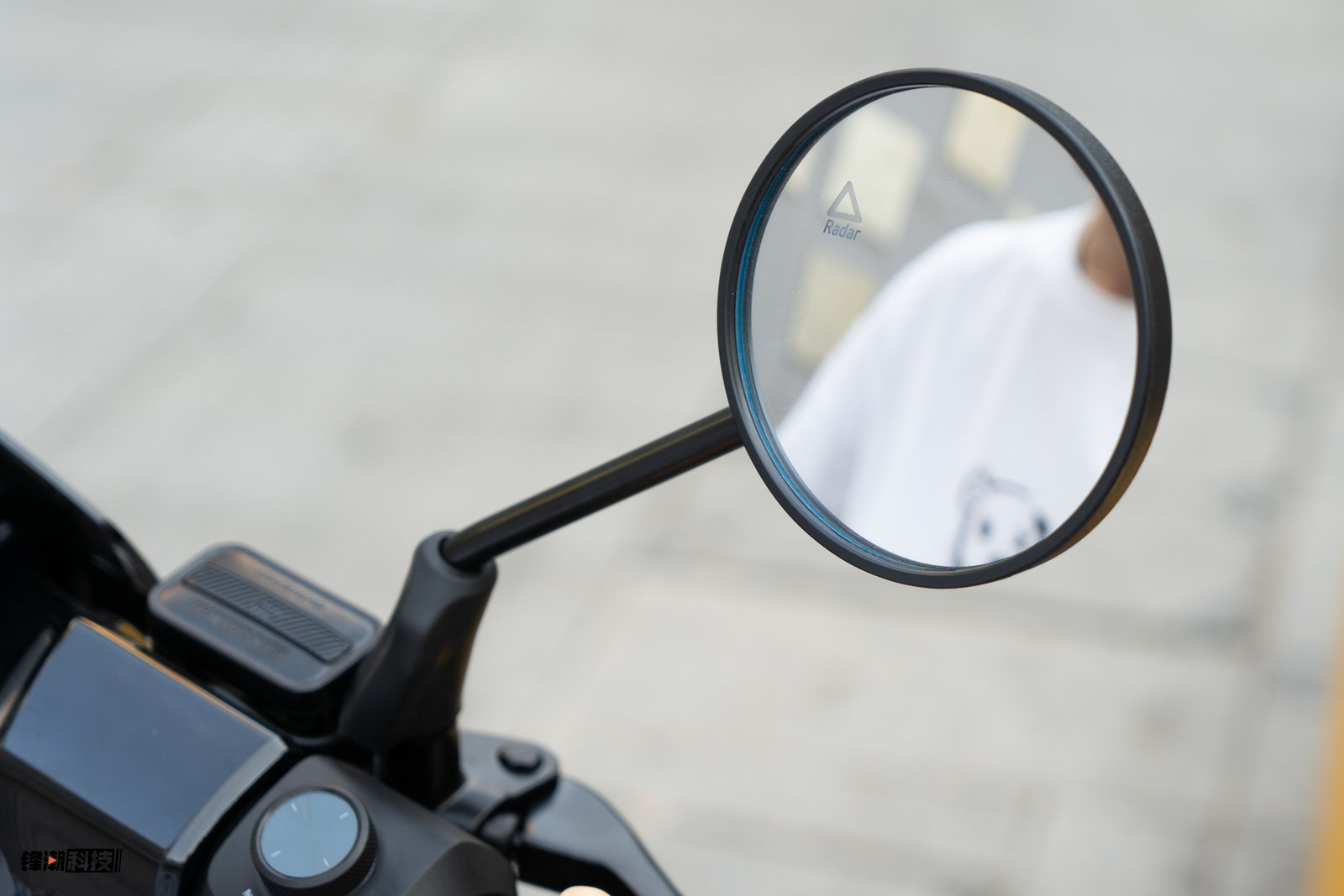 细节上,小牛NX Hyper 的尾部配备一块汽车级毫米波雷达,拥有 BSD 盲区监测系统和 后碰撞预警系统,可以精确预判后方车辆的情况。如果后方有车辆或路人,在后视镜上就会亮黄灯提示,行车更安全。