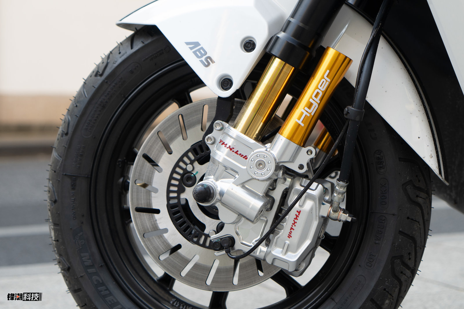 车辆制动上,小牛NX Hyper拥有前对向 4 活塞辐射卡钳、赛道级刹车片等加持,再配合前 240mm 和后 220mm 大盘双碟刹,带来更灵敏的制动,为车辆行驶提供安全保障。
