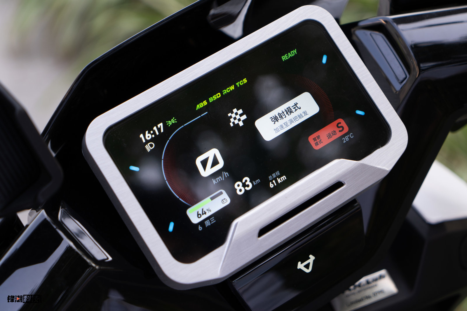 小牛NX Hyper 还有一块 5 英寸 TFT 彩色仪表盘,摩托车的电量、里程数、驾驶模式还有时间都能一目了然,还可以将导航路线传到这块屏幕上,不用加装手机支架,路况信息也能清晰呈现。