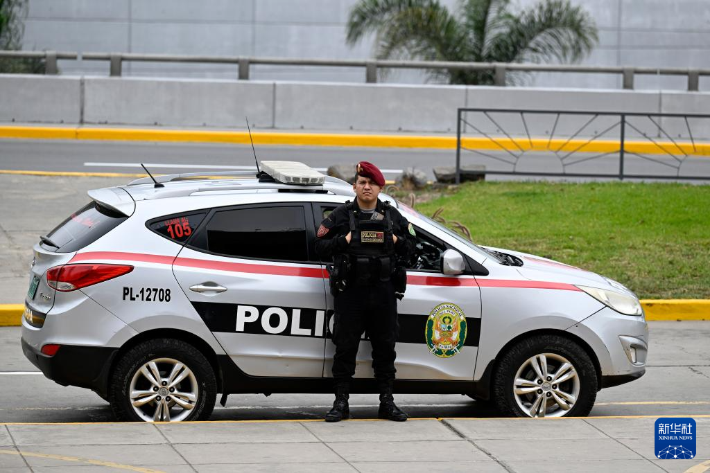 11月12日,在秘鲁首都利马,一名警察在亚太经合组织第三十一次领导人非正式会议会场外警戒。