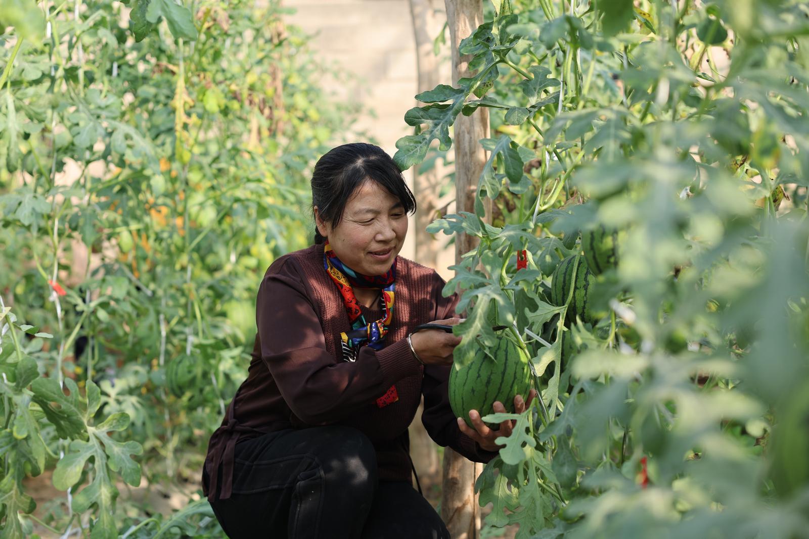 走进大庄子镇永丰村种植户姚天文的“小金瓜”种植大棚,放眼望去,绿油油的藤蔓顺势生长,西瓜圆润饱满。每个“小金瓜”都按照标准化种植,标记上不同的授粉时间,也代表了不同的成熟时间。种植户姚天文正忙着和家人采摘西瓜,随后将它们打包、装车,准备运往市场售卖。
