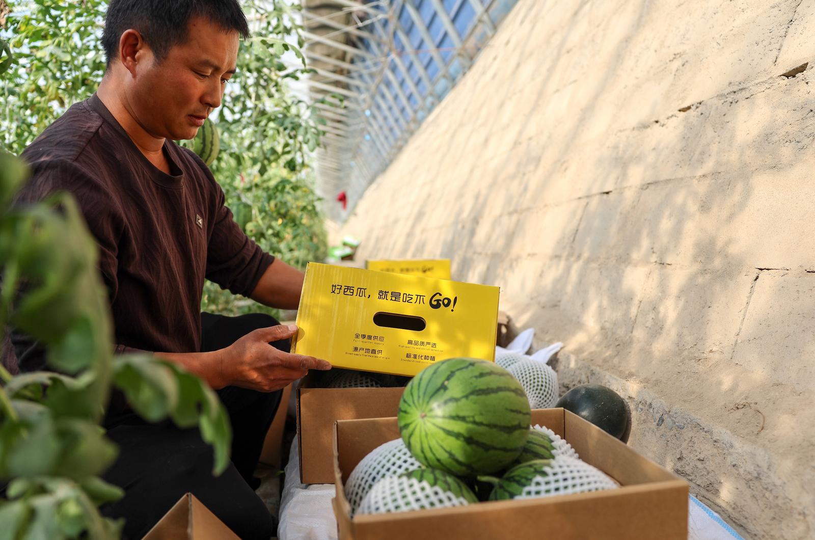 “这一茬西瓜每一棚都能装400箱左右,按照我们目前60块钱的销售价格,一棚能卖2.4万元左右,收入还是比较可观的。”种植户姚天文表示。