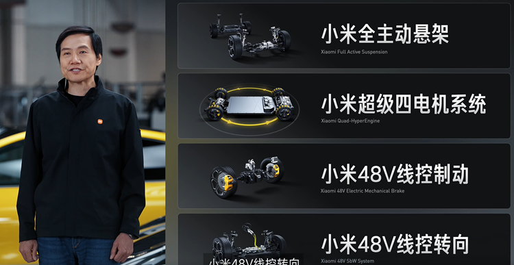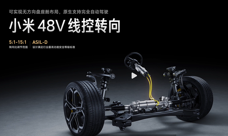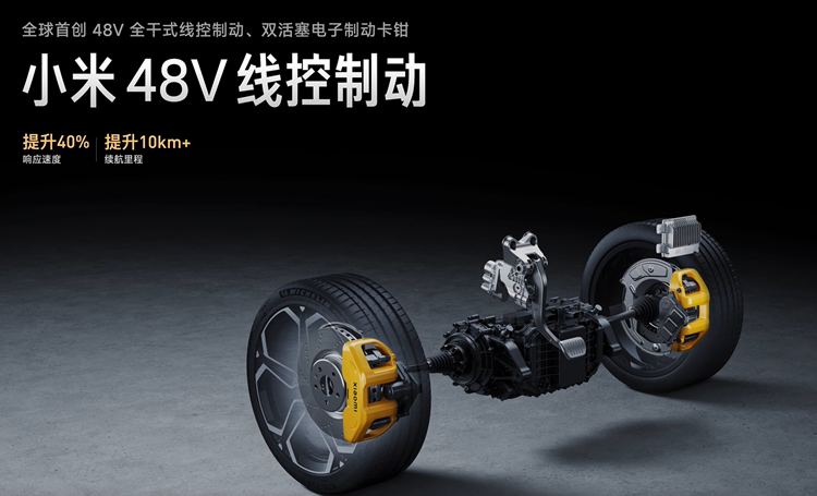 而48V低压系统,可以支持更多大功率器件上车,来更好实现小米的人车家的生态融合。而小米48V线控制动以及小米48V线控转向,取消了液压机构,使用电动卡钳,制动更为迅速灵敏。