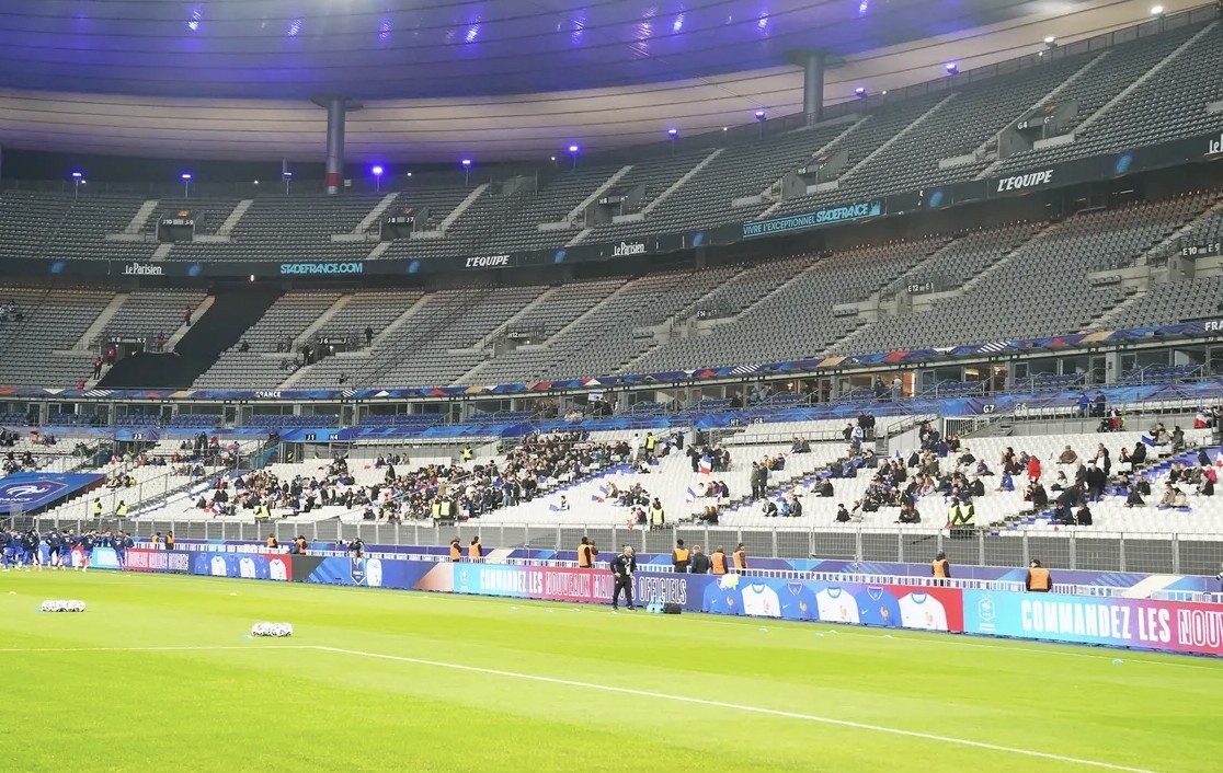 由于复杂的背景因素,法兰西体育场显得异常空旷,只有16611名球迷出现在看台上,对于法国队的比赛来说,这是一个异常现象。