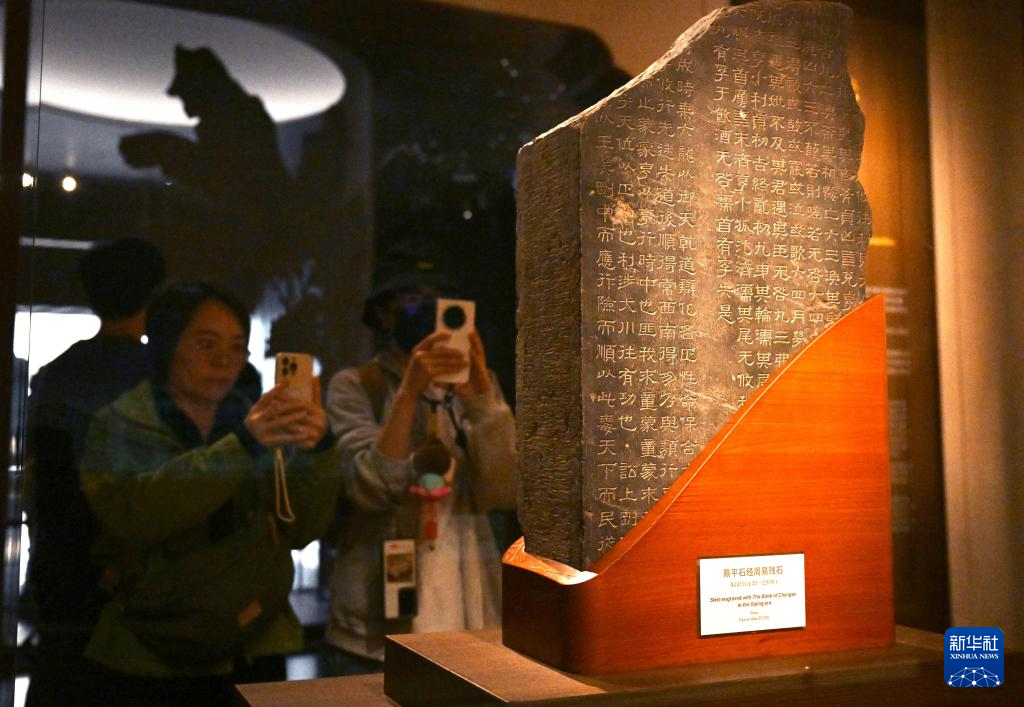 11月14日,观众在上海博物馆东馆中国历代书法馆拍摄东汉时期的《熹平石经周易残石》。