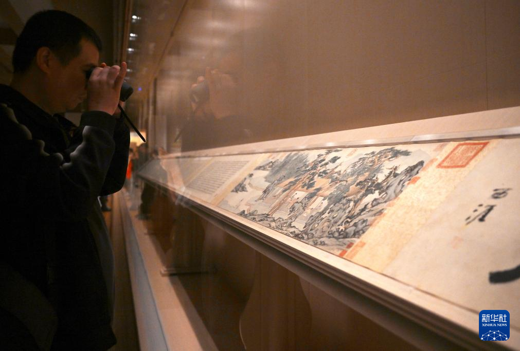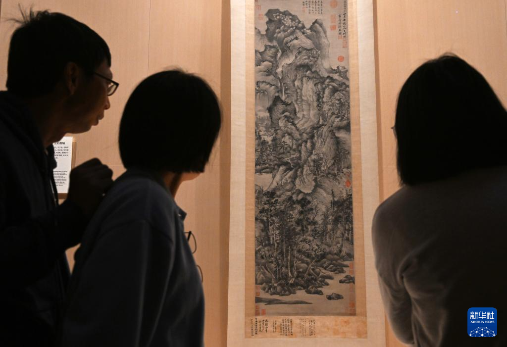 11月14日,在上海博物馆东馆中国历代绘画馆,观众在元代王蒙的《青卞隐居图》前驻足观看。