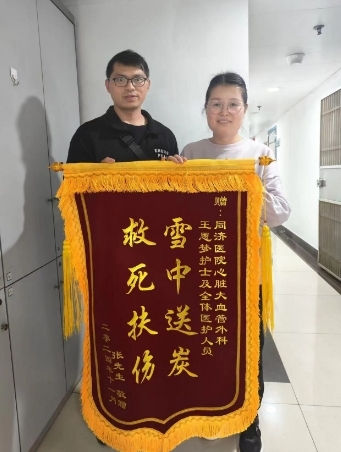 术后,张先生母亲恢复良好,一家人便开始了长达一个月寻找救命恩人的路。但任凭张先生他们如何打听,询问当晚的目击者,都没有得到任何线索。最后,张先生一家决定再次回到餐厅,希望通过当时的监控录像找到一些线索。令人惊喜的是,餐厅工作人员提供了救命恩人的联系方式。在得知当晚救人的女子是华中科技大学同济医院工作人员后,张先生夫妇俩来到医院,当面表达了感激之情,并赠送锦旗。